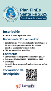 - Correo electrónico: planfines@santafe.gov.ar